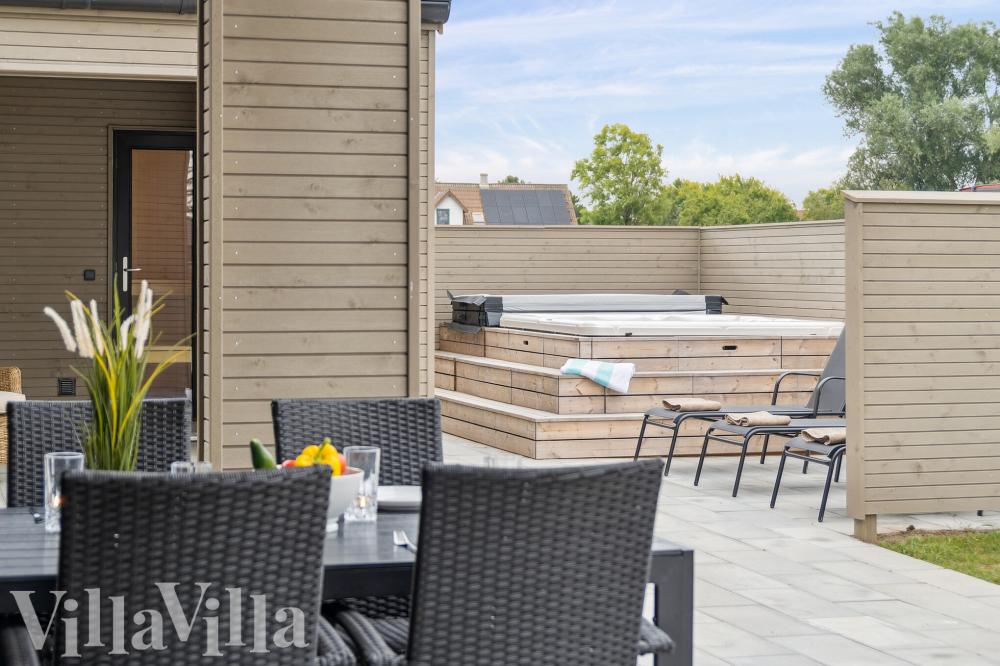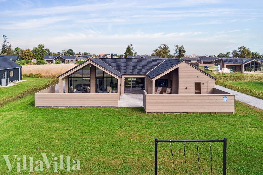 Luksuriøst feriehus til 14 personer ved Hasmark Strand med aktivitetsrom, basseng, petanque og utendørs boblebad.