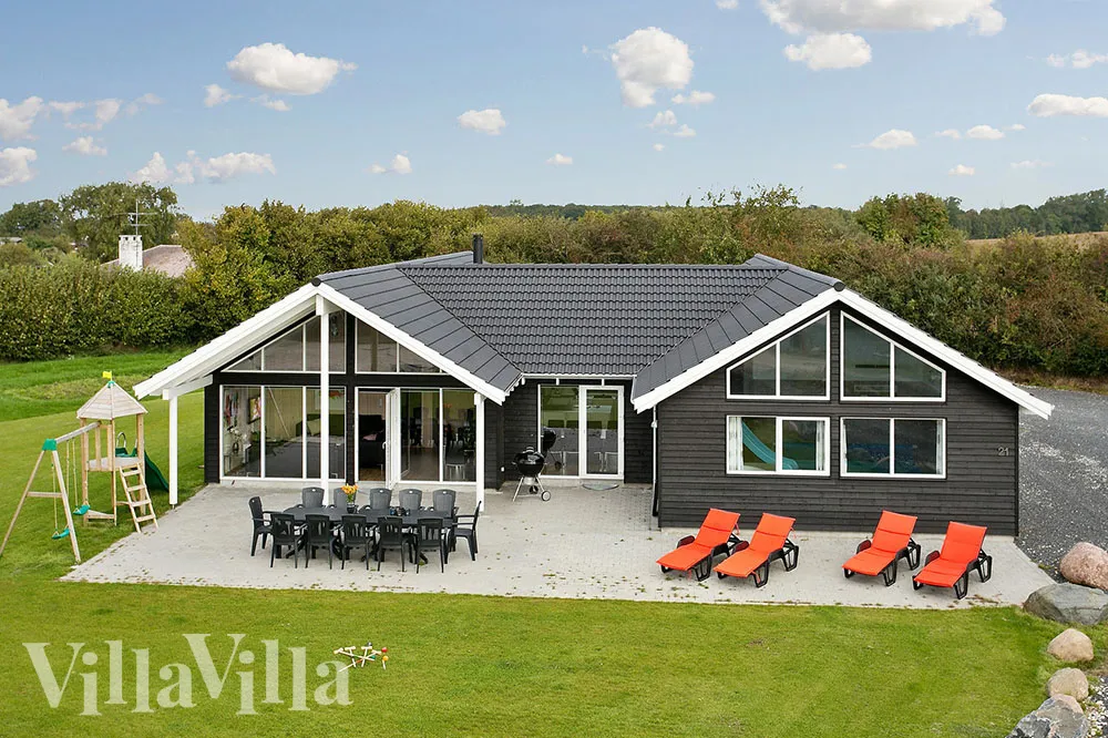 I dette velutstyrte Skanlux-sommerhuset med aktivitetsrom og badeland føler man seg velkommen året rundt. Huset ligger nær den sjarmerende byen Bogense og Skåstrup Strand. I det innbydende bassengrommet kan man kose seg i det 18 m2 store bassenget med sklie, boblebadet eller saunaen. Det er også motstrømsanlegg i bassenget, som gir litt ekstra kondisjonstrening og moro. I aktivitetsrommet med biljard, bordtennis, bordfotball og dart kan man utfordre familie og venner til spennende spill. Fra baren med eget kjøleskap kan man... Les mer