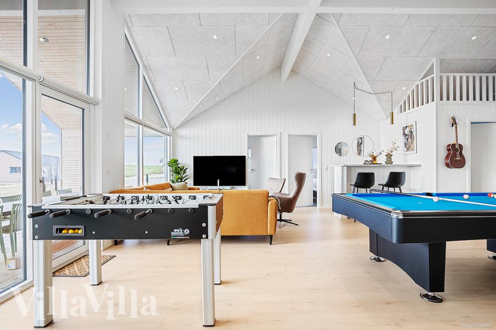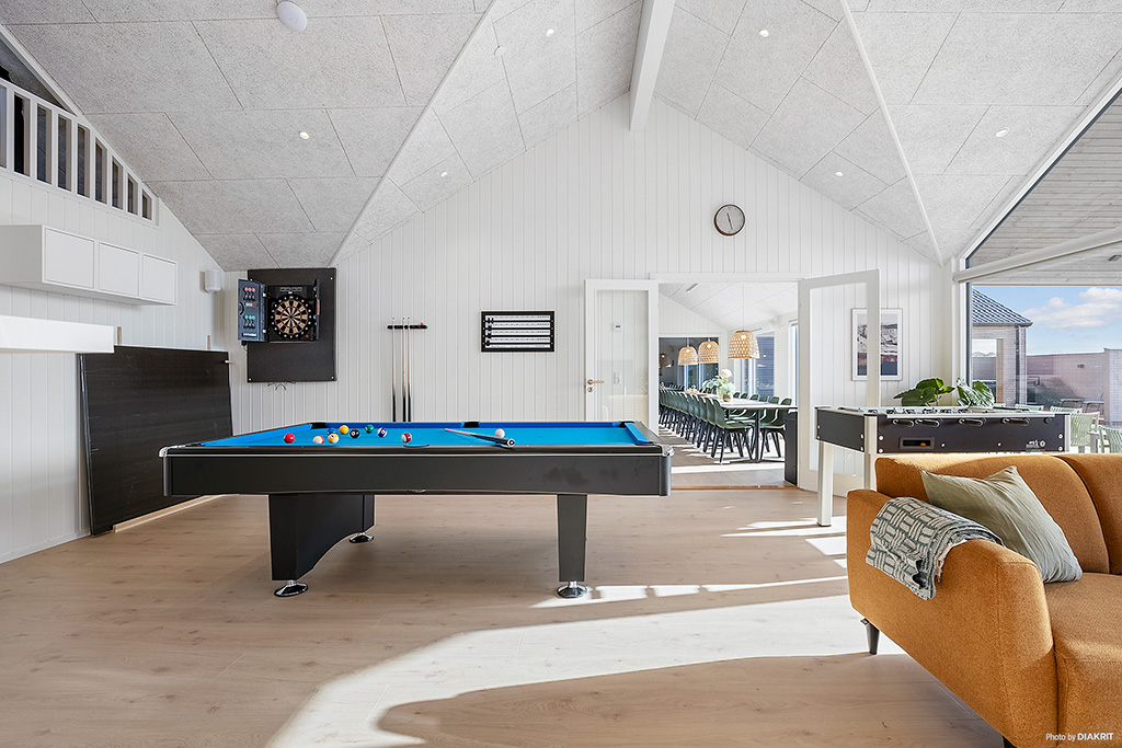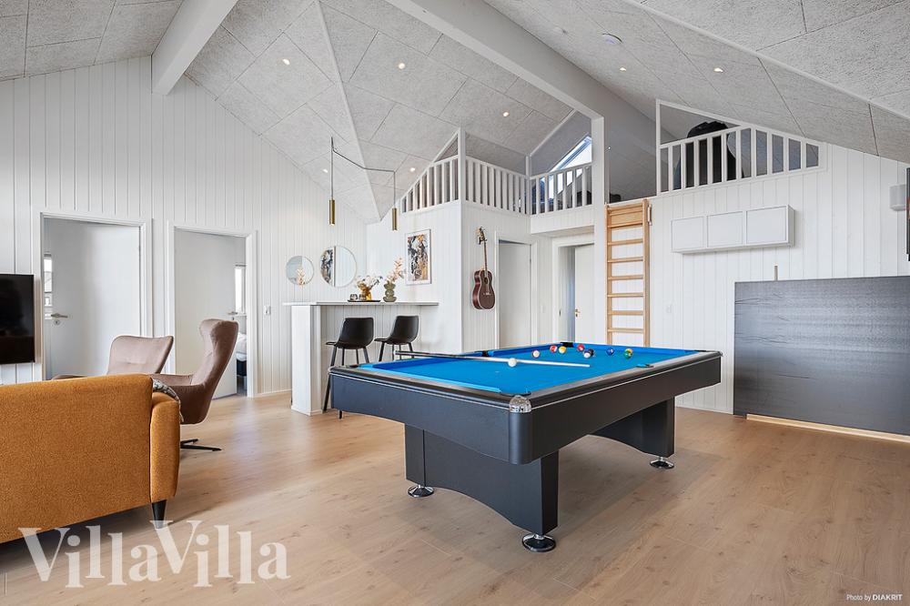 Hvis dere får lyst på flere innendørsaktiviteter, tilbyr husets store aktivitetsrom timevis med moro og konkurranse. Konkurrer i biljard, bordtennis, dart, shuffleboard eller bordfotball, eller hva med et brettspill for en koselig stund sammen? Både i aktivitetsrommet og stuen kan dere nyte kvelden med en god film på de store flatskjermene, som sammen med det integrerte Sonos Surround-systemet skaper en stemningsfull hjemmekinoopplevelse.