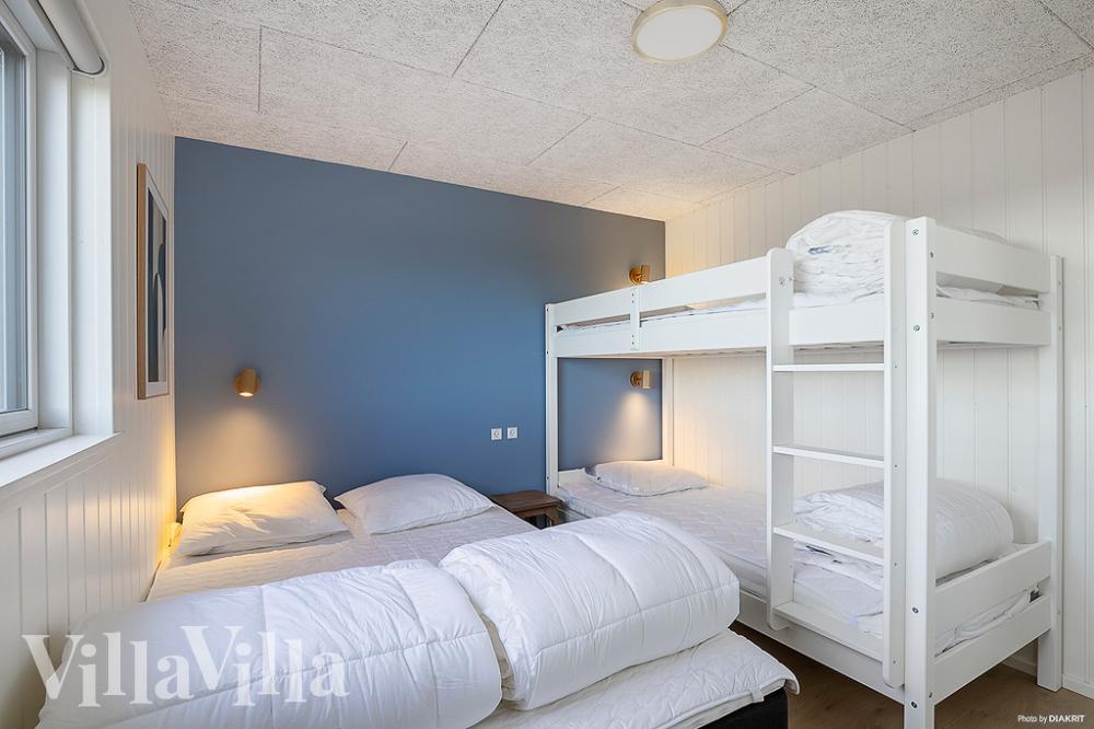 Det er plass til opptil 24 personer, fordelt på åtte soverom og en romslig hems. To av rommene er innredet som familierom med dobbeltseng (140x200) og en køyeseng. Her er det plass til opptil fire personer, perfekt for barnefamilier eller tre voksne. De gjenværende seks rommene har to enkeltsenger, som kan settes sammen til dobbeltseng ved behov. Dessuten er det fire ekstra soveplasser på den store, koselige hemsen – perfekt for barn som ønsker sitt eget lille fristed. Med fire bad og gjennomtenkt interiørdesign får alle en komfortabel opplevelse, selv når huset er fullbooket.