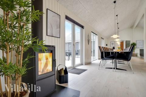 Her er et luksusferiehus bygget med sans for detaljer – og uten å spare på noe som helst! Feriehuset tilbyr de beste rammene for en flott ferie for hele storfamilien eller flere familier som ønsker å feriere sammen. Feriehuset har en vakker beliggenhet i naturskjønne omgivelser ved Venø Bugt, som er en del av Limfjorden. Området er ideelt for naturelskere, som kan nyte lange spaserturer i urørt natur, sommer som vinter. Like ved feriehuset er det en flott og barnevennlig sandstrand som er kategorisert med Blått Flagg på grunn av det grunne og rolige vannet. Handelsbyen Skive ligger kun 20 km østover.