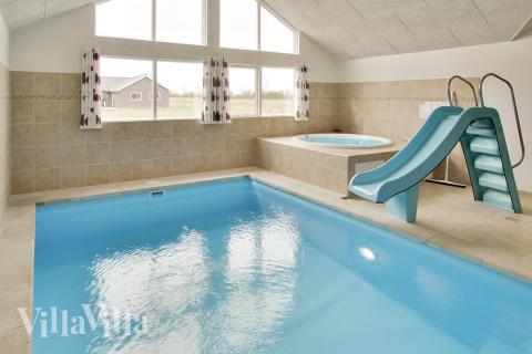 I husets badeland kan man bade og svømme i bassenget (18 m2) med vannsklie og motstrømsanlegg. Man kan også skjemme bort seg selv i husets elegante boblebad eller bli god og varm i saunaen.