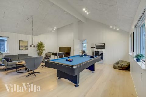 Det finnes flere morsomme aktiviteter i feriehusets aktivitetsrom. Her kan hele familien konkurrere i bordtennis, biljard og bordfotball. Det er også mulig å kjempe om heder og ære på PlayStation 4-konsollen – bare husk å ta med egne spill! Mellom spillrundene kan du slappe av i den hyggelige baren som er utstyrt med eget kjøleskap.