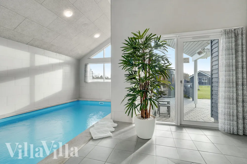 Moroa fortsetter i feriehusets bassengavdeling. Her kan du ta en oppkvikkende svømmetur. Bassenget er 15 m2 stort og har romersk trapp, så det er enkelt å komme seg i og opp av vannet.