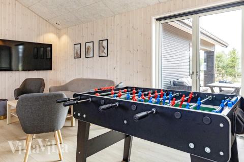 På den flotte treterrassen kan dere nyte det utendørs boblebadet og slappe av under åpen himmel, eller finne varmen i den utendørs badstuen. Det er gode muligheter til å nyte lange sommerkvelder på den store overbygde terrassen, som dessuten har infrarøde terrassevarmere. I mellomtiden kan barna more seg i leketårnet i den inngjerdede hagen, hoppe på den nedgravde trampolinen eller spille forskjellige hagespill som finnes i feriehuset.