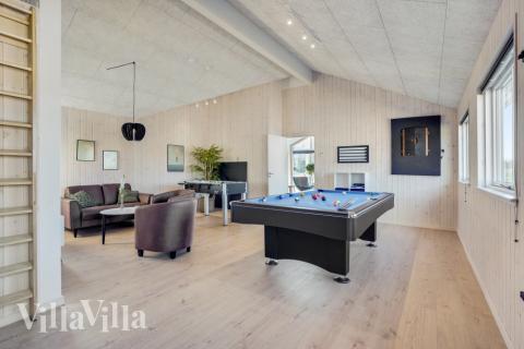 Luksushuset har to forskjellige aktivitetsområder, slik at dere er sikret latter og moro uansett årstid. Feriehuset kan skryte av sin egen bassengavdeling med et 18 m2 stort svømmebasseng, en badstue og et boblebad til 4–6 personer. Bassenget har vannsklie og motstrømsanlegg og er virkelig en slager blant de aller minste.