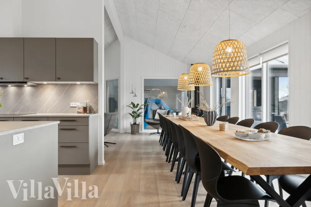 Dette moderne feriehuset er designet for å skape uforglemmelige minner for alle. Huset befinner seg i sjarmerende Ålbæk, kun 500 meter unna stranden og med kort avstand til Skagen og Frederikshavn, og det byr på en perfekt blanding av avslapning og aktiviteter, både innendørs og utendørs. Det store kjøkken- og fellesrommet er hjertet i VillaVilla-huset. Huset legger til rette for hyggelige fellesmåltider og minneverdige kvelder, med en komfortabel sofagruppe, et stort, åpent kjøkken og et stort spisebord med plass til... Les mer