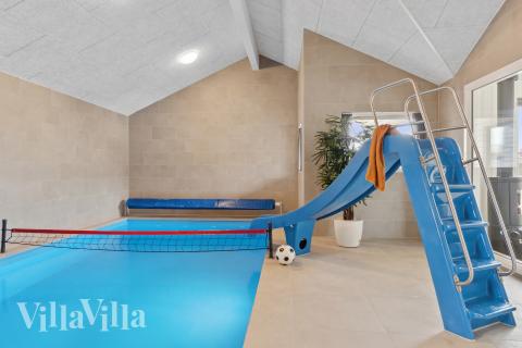 Bassengavdelingen er feriens høydepunkt, særlig for de badeglade. Her ligger alt til rette for timevis med lek og moro, med basseng med volleyballnett og en artig vannsklie. Hvis noen av husgjestene ikke kan få nok av vann, er gratis adgang til den flotte Frederikshavn Svømmehall inkludert i oppholdet. Her finner dere blant annet fire bassenger, velværeavdeling og treningssenter.