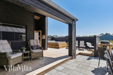 Flott VillaVilla-hus i Ålbæk med basseng, imponerende utekjøkken og plass til 20 personer.