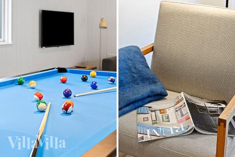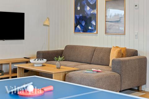 Midt i huset ligger aktivitetsrommet – en drøm for både barn og voksne. Her kan dere konkurrere i bordfotball, biljard, dart og bordtennis, nyte en kald drink fra baren eller slappe av i sofagruppen. Rett ved siden av inviterer innendørsbassenget med vannsklie til lek og moro. Et av husets mest spesielle egenskaper er kinoen, hvor dere kan se filmer på storskjerm i myke seter – en sikker vinner blant filmelskere i alle aldre.