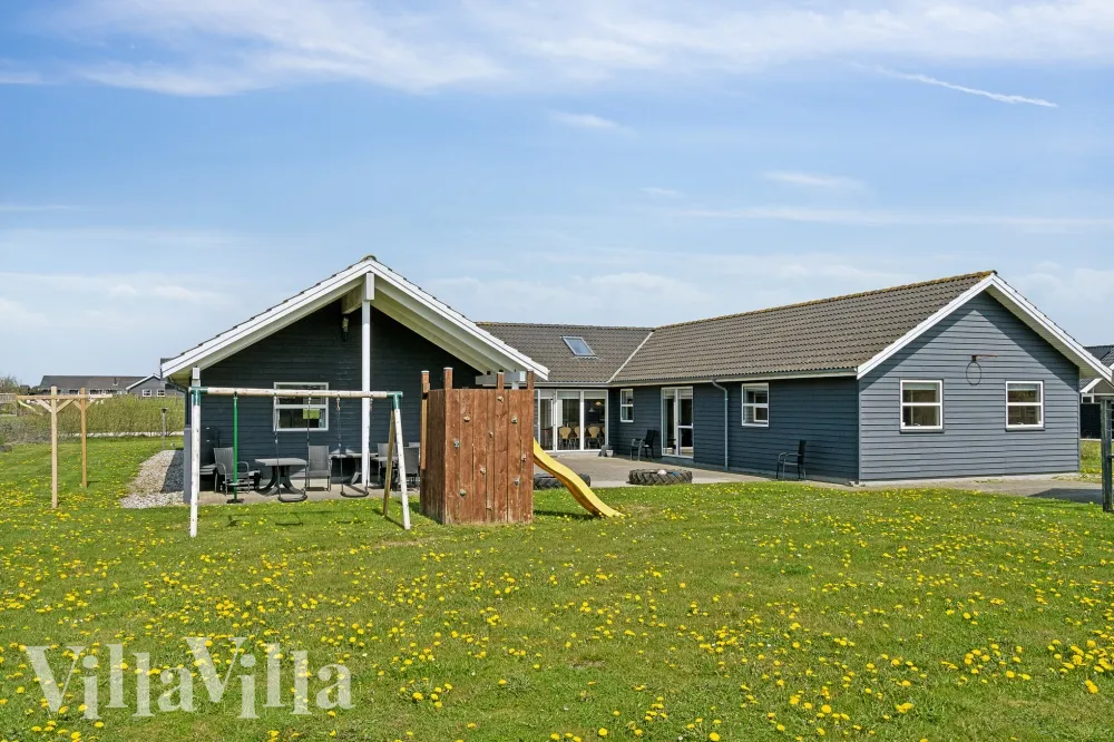 Dette flotte Skanlux-luksushuset byr på en fantastisk ferie med mange aktivitetsmuligheter, noe som gjør huset til en sikker feriesuksess uansett årstid. Huset ble bygget i 2008 på en stor naturtomt kun 800 m fra Nordsjøen. Det har store, lyse rom med god plass til 22 personer fordelt på 9 soverom og en hems. Timevis med lek og moro flyr unna i husets badeland, som har et 21 m2 stort basseng med sklie og volleyballnett. Det er også boblebad til 4–6... Les mer