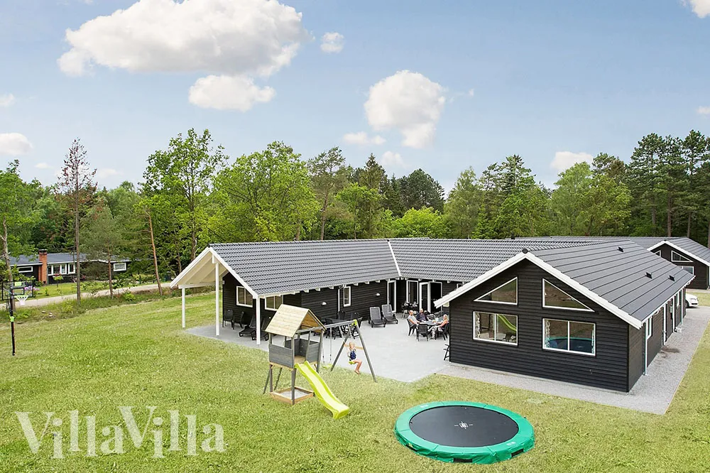 Her kan du se en videopresentasjon av huset. Midt i smørøyet mellom Liseleje og Tisvildeleje i Asserbo-området, ligger Skanlux-sommerhuset. Det ligger tett på Tisvilde Hegn, Liseleje og Tisvildeleje strand, spennende attraksjoner, små butikker og restauranter. I tillegg er det kort kjøreavstand til Københavns utallige severdigheter og shoppingmuligheter. De badeglade kan boltre seg i det 18 m2 store bassenget med motstrømsanlegg og sklie. Den romerske trappen gjør det enkelt for småbarn og eldre å entre bassenget. Etter all anstrengelsen i bassenget... Les mer