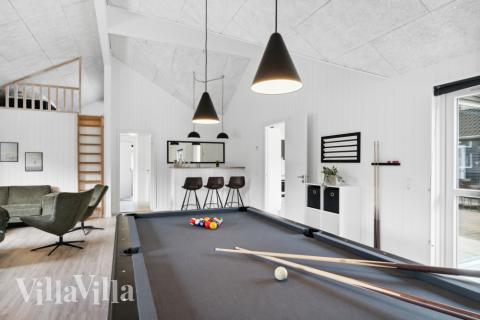 Dette store sommerhuset med svømmebasseng ligger ved sjarmerende Asserbo, mellom Tisvildeleje og Liseleje. Huset ligger i kort avstand til artige og deilige sandstrender, og heller ikke langt fra Københavns utallige muligheter. Sommerhusets eget bassengområde med 20 m2 med sklie og motstrømsanlegg byr på mange timer med moro. Her finnes også rikelig av muligheter for ren avslapping og velvære i spa- og badstuområdet. For de spillelystne har aktivitetsrommet mer enn nok av underholdning å tilby. Her er biljard, bordfotball, bordtennis og... Les mer