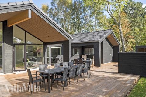 Det er dessuten fokus på utendørsaktiviteter i feriehuset. Nyt avslappende øyeblikk i det varme utendørs boblebadet, der dere kan glemme hverdagens kjas og mas. Det finnes også en trampoline for dem som elsker å hoppe. De aller minste familiemedlemmene kommer helt sikkert til å elske leketårnet. Utendørs finner dere dessuten en stor terrasse med tilhørende hagemøbler og grill.