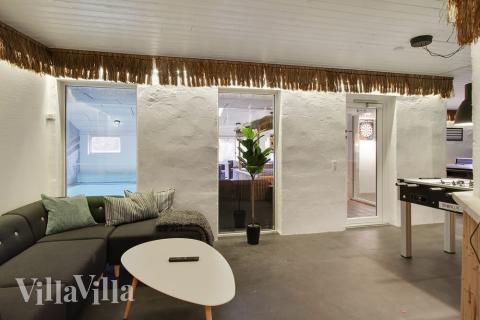 Liker dere heller aktiviteter innendørs, så tilbyr huset også massevis av muligheter. Her finnes nemlig et stort aktivitetsrom som er utstyrt med både biljardbord, Playstation 4, bordtennis, dart og bordfotball. Sett i gang med spillene eller nyt en kald forfriskning i feriehusets egen bar med kjøleskap som også befinner seg i aktivitetsrommet. Til de minste gjestene er det innredet et koselig lekerom.