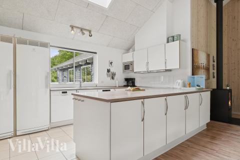 Det sentrale oppholdsrommet har god plass til at familie og venner kan samles til en god middag og hyggelig samvær. Kjøkkenet er stort og velutstyrt med alt som trengs til feriens matlaging.