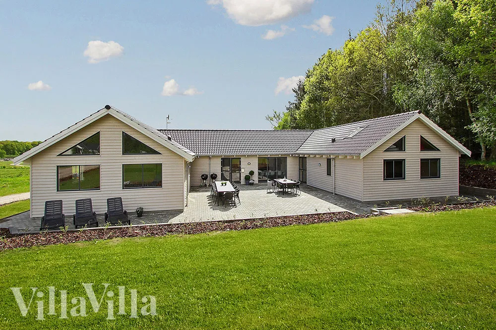 Sommerhusets 9 soverom er fordelt på tre soveavdelinger. Hvert rom har enten dobbeltseng eller 2 enkeltsenger. I tillegg finnes det 2 hemser med totalt 6 soveplasser (best for barn).
