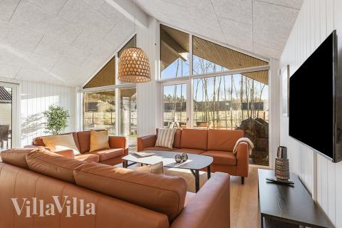 Dette flotte feriehuset ligger i naturskjønne Fjellerup Feriecenter. Her er det plass til opptil 30 personer – perfekt til større familier, vennegjenger eller bedrifter som er ute etter en luksuriøs ferieopplevelse med massevis av plass og aktiviteter.