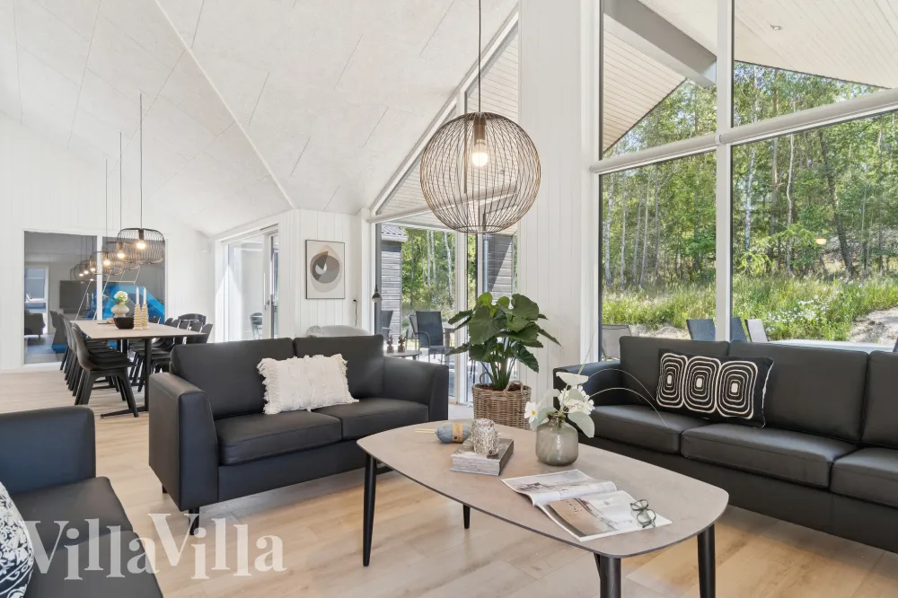 Det store fellesrommet ligger i hjertet av huset, og her kan dere samles rundt det lange spisebordet til smakfulle måltider, tilberedt på kjøkkenet med åpen planløsning. Etter middagen kan dere slå dere ned i de myke sofaene for en avslappende stund sammen.