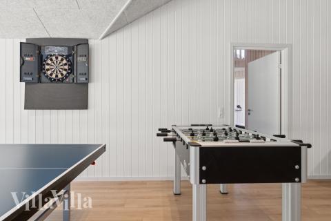Når dere trenger litt underholdning, kan dere trekke dere tilbake til husets aktivitetsrom – midtpunktet for moro og konkurranser. Her kan dere konkurrere i bordtennis, biljard, bordfotball eller dart, mens andre slapper av foran TV-en i sofagruppen eller nyter en drink i den private baren. Aktivitetsrommet skaper en fantastisk atmosfære for både barn og voksne som ønsker å tilbringe tid sammen på en morsom og aktiv måte.