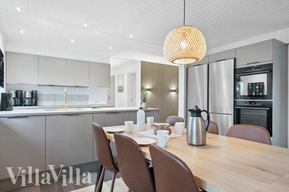 Feriehuset er designet for både familier og vennegjenger som ønsker høy komfort og gode rammer for sosialt samvær. I hovedhuset finner dere fire romslige soverom og tre bad, slik at alle får god plass. I tillegg er det et koselig anneks med to ekstra rom, som gir litt ekstra privatliv – perfekt for tenåringer, besteforeldre eller et par som ønsker å trekke seg tilbake.