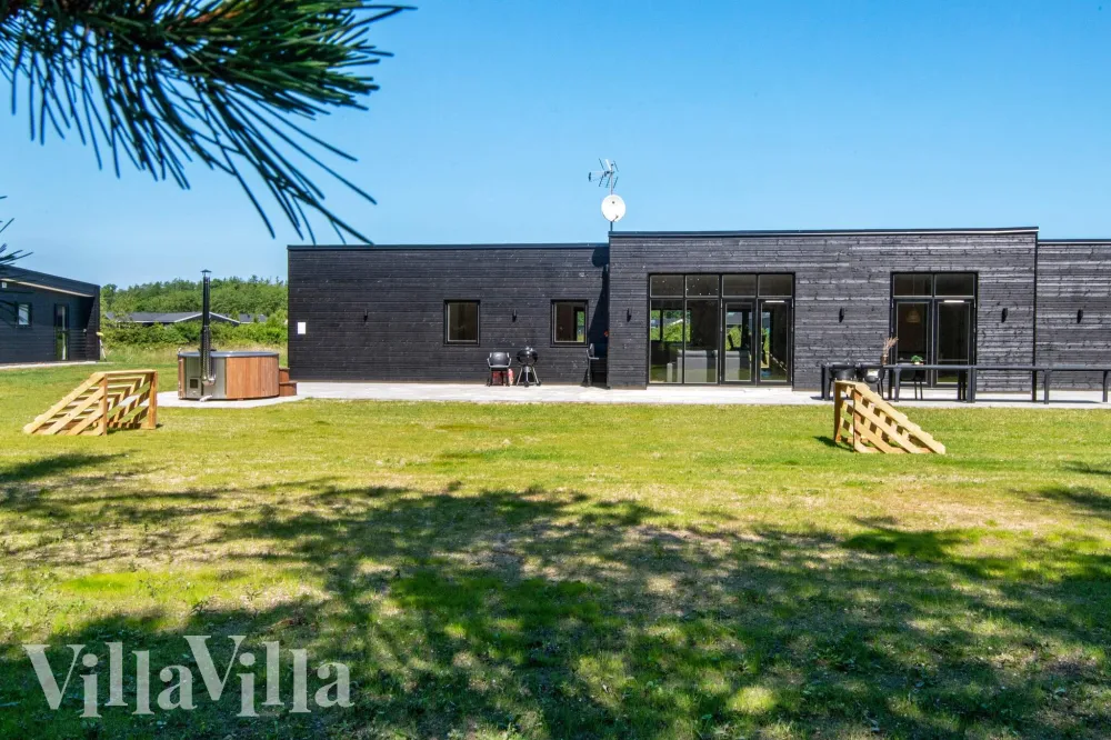 Utendørs venter en stor hage med fotballmål, som inviterer til lek og ballspill, mens de voksne kan slappe av i hagemøblene eller fyre opp grillen og nyte lange, lyse kvelder. Det er selvsagt også en lader for elbiler, slik at ferien også blir praktisk.