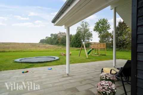 Utendørs er det vask med bord som kan brukes som både grovkjøkken og fiskerenseplass der sportsfiskeren kan rense dagens fangst. Den delvis overbygde terrassen har hagemøbler og grill. I hagen er det både huske, sandkasse og trampoline til de yngste.