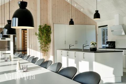 For å lage mat til mange er det viktig med et godt utstyrt kjøkken, og det får dere her. Kjøkkenet har hele to oppvaskmaskiner, to vasker, to komfyrer og god plass i både kjøleskapet og fryseren. Rundt det lange spisebordet kan alle kan nyte et bedre måltid sammen. I kjøkken- og fellesrommet er det dessuten vedovn og en komfortabel sofagruppe foran TV-en.