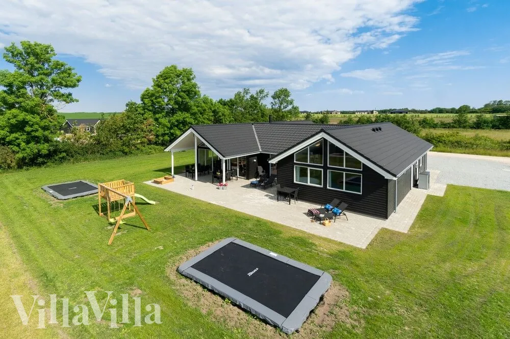 I hagen finner dere to store, nedgravd trampoliner samt huske og sandkasse. Terrassen er delvis overbygd og har selvsagt både hagemøbler og grill, slik at dere kan nyte den danske sommeren med en koselig grillkveld.