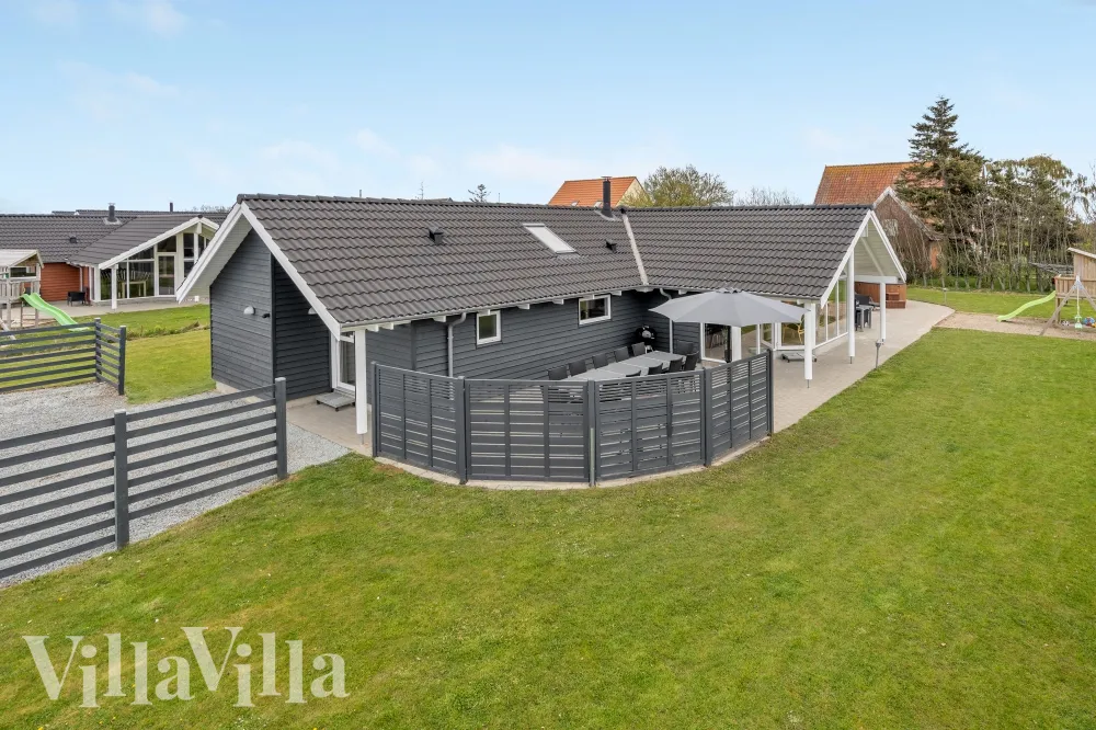 Dette lekre Skanlux-sommerhuset med basseng, boblebad, sauna og aktivitetsrom ligger like ved sandstranden på halvøya Kegnæs på Als. Her kan man hoppe i bassenget (15 m2), skli i vannsklien, slappe av i boblebadet med plass til 4–6 personer eller varme seg i husets sauna. Etter en tur i husets «badeland» kan man fortsette dagen i aktivitetsrommet. Der kan man utfordre hverandre i biljard, bordtennis, fotballspill, Playstation 3 eller dart. Husets samlingspunkt, det hyggelige oppholdsrommet, er smakfullt møblert med mulighet til... Les mer