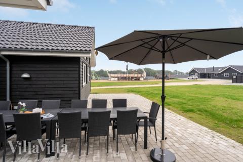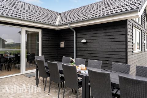 Måltidene inntas gjerne i det lyse, romslige kjøkkenet med åpen løsning, der alle kan samles for å lage mat og ha litt kvalitetstid sammen. Kjøkkenet er spesielt godt utstyrt og kan friste ivrige hobbygourmeter til å tilberede de lekreste retter. Mens dere venter på servering, kan dere bruke sofagruppen like ved til å slappe av og hygge dere. Innendørs står det et fint langbord til hele 18 personer, men det er også mulig å spise på den tildekte terrassen, som for øvrig har en grill som gjerne tennes.