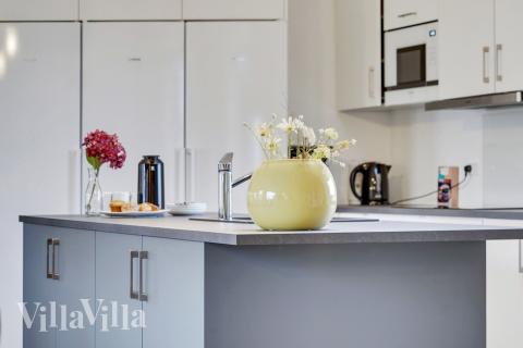 Det store kjøkkenet midt i huset har alt dere trenger for å tilberede herlige festmåltider til hele familien. Her er det også god plass til å lage mat sammen i løpet av ferien. Kjøkkenet og spisestuen har god plass til alle de 20 gjestene og er ofte samlingspunktet for de mange typiske ferieaktivitetene – brettspill, koselige middager og planlegging av utflukter. Kanskje morgendagens tur går til Universe Science Park? Eller til Gråsten slott? Sønderjylland byr på mange minneverdige ferieopplevelser med familien.