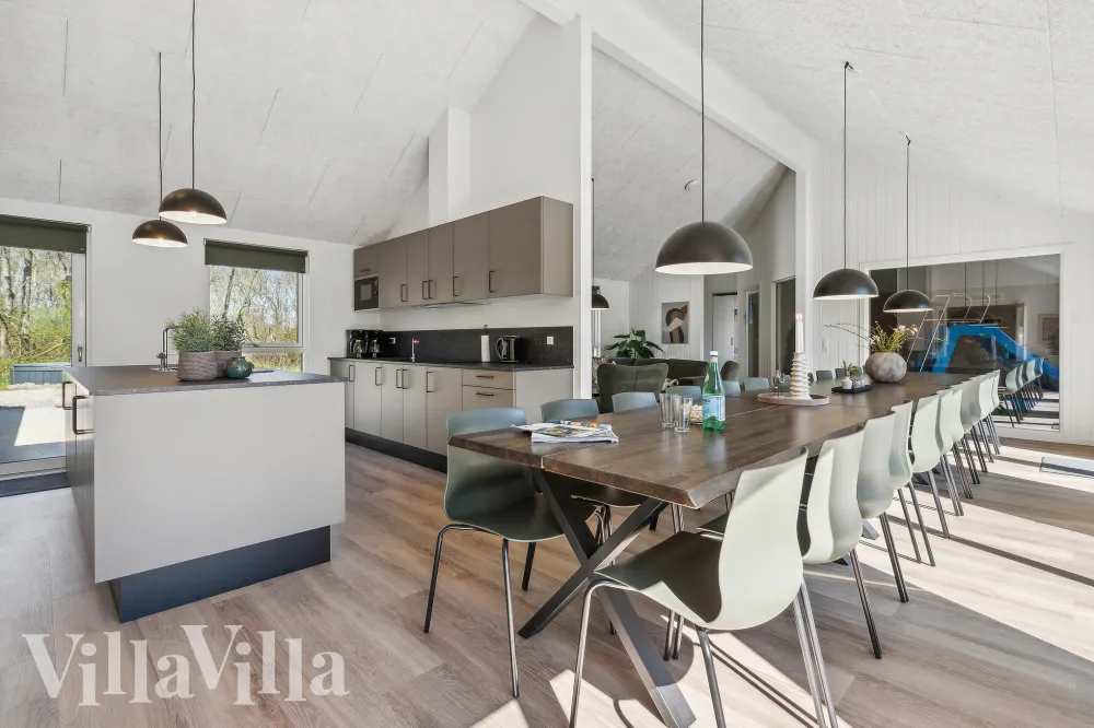 Dette romslige feriehuset er designet for deg som ønsker god plass, mange fasiliteter og luksus på ett og samme sted. Som et moderne Sammenhus™ er feriehuset det perfekte stedet for sosialt samvær, avslapning og aktive ferier – uansett årstid. • XL-kjøkken og stor stue i stilfull design • Bassengrom med rutsjebane og plass til vannlek • Stor terrasse med lounge, grill og velværeområde Det store XL-kjøkkenet er det naturlige sentrum av feriehuset. Det er god plass ved bordet og kapasitet... Les mer