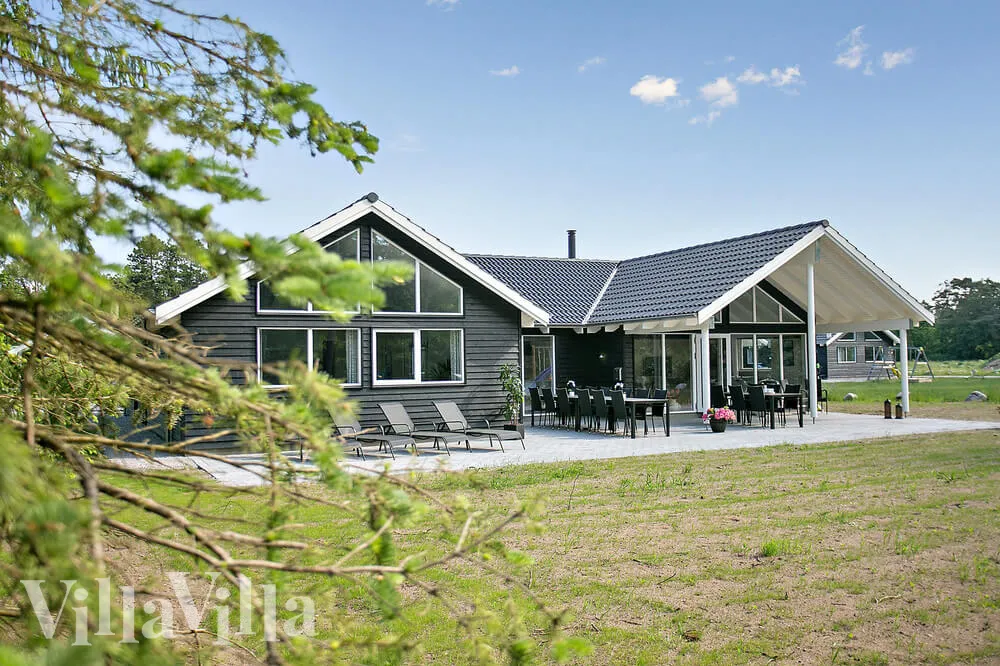 Kjøkken- og fellesrommet befinner seg midt i feriehuset, og fra det lange spisebordet kan du holde øye med bassenget. Kjøkkenet er selvsagt utstyrt med to oppvaskmaskiner og ovner som gjør det enklere å lage mat til mange mennesker. Dere kan også fyre opp i vedovnen og slenge dere på sofaen foran fjernsynet eller med en god bok.