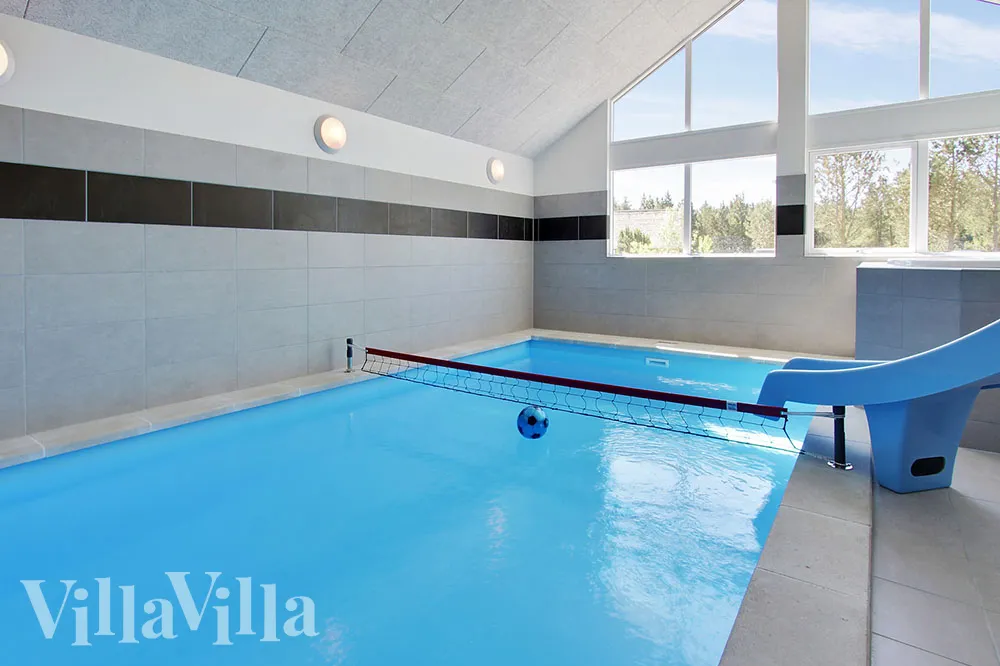 Feriehuset har et pent bassengområde med et 18 m2 stort svømmebasseng med vannsklie og romersk trapp. Her finner dere også et luksuriøst boblebad og en varm badstue, som gir dere en komplett følelse av velvære.