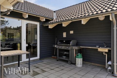 Velkommen til dette spesielt luksuriøse sommerhuset med mange flotte detaljer. Luksushuset er bygget av Skanlux og ligger godt til i den populære feriebyen Blåvand – ikke langt fra Vesterhav. Feriehuset byr på forskjellige innendørsaktiviteter og stilfulle rammer til ferien i Danmark. I det flotte fellesrommet med kjøkken er det et stort spisebordet plass til at alle 16 gjestene kan nyte et herlig måltid sammen. Det stilfulle kjøkkenet er godt utstyrt og inneholder det man trenger for å lage god mat... Les mer