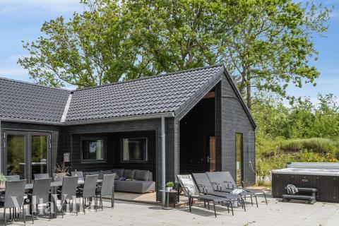 Dette flotte VillaVilla-huset ligger ved Henne strand i Vestjylland. Utforsk den vakre naturen i området til lyden av Nordsjøens brusende bølger. I det moderne VillaVilla-huset med plass til 20 personer er komfort og underholdning sikret. Start dagen med en dukkert i husets private basseng – en sikker vinner for både store og små. Hvis været tillater det, kan dere dessuten benytte dere av den utendørs velværeavdelingen med uteboblebad, -badstue og -dusj. Det er særlig avslappende under stjernehimmelen på en klar... Les mer