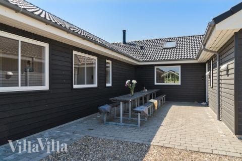 Husets delvis overbygd terrasse med grill og hagemøbler er perfekt for en hyggelig grillkveld eller avslapning i solen. De yngste feriegjestene kan more seg med å hoppe på trampolinen i hagen og leke i sandkassen. I tillegg kan barna boltre seg med husker og sandkasse.