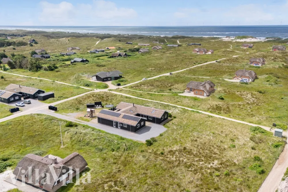 Dette praktfulle Skanlux-sommerhuset med basseng er innredet med sans for detaljer og kvalitet, og ligger nær Søndervigs flotte sandstrand.