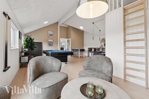 Flott feriehus til 18 personer med basseng og aktivitetsrom i Søndervig – tett på strand og omringet av sanddyner